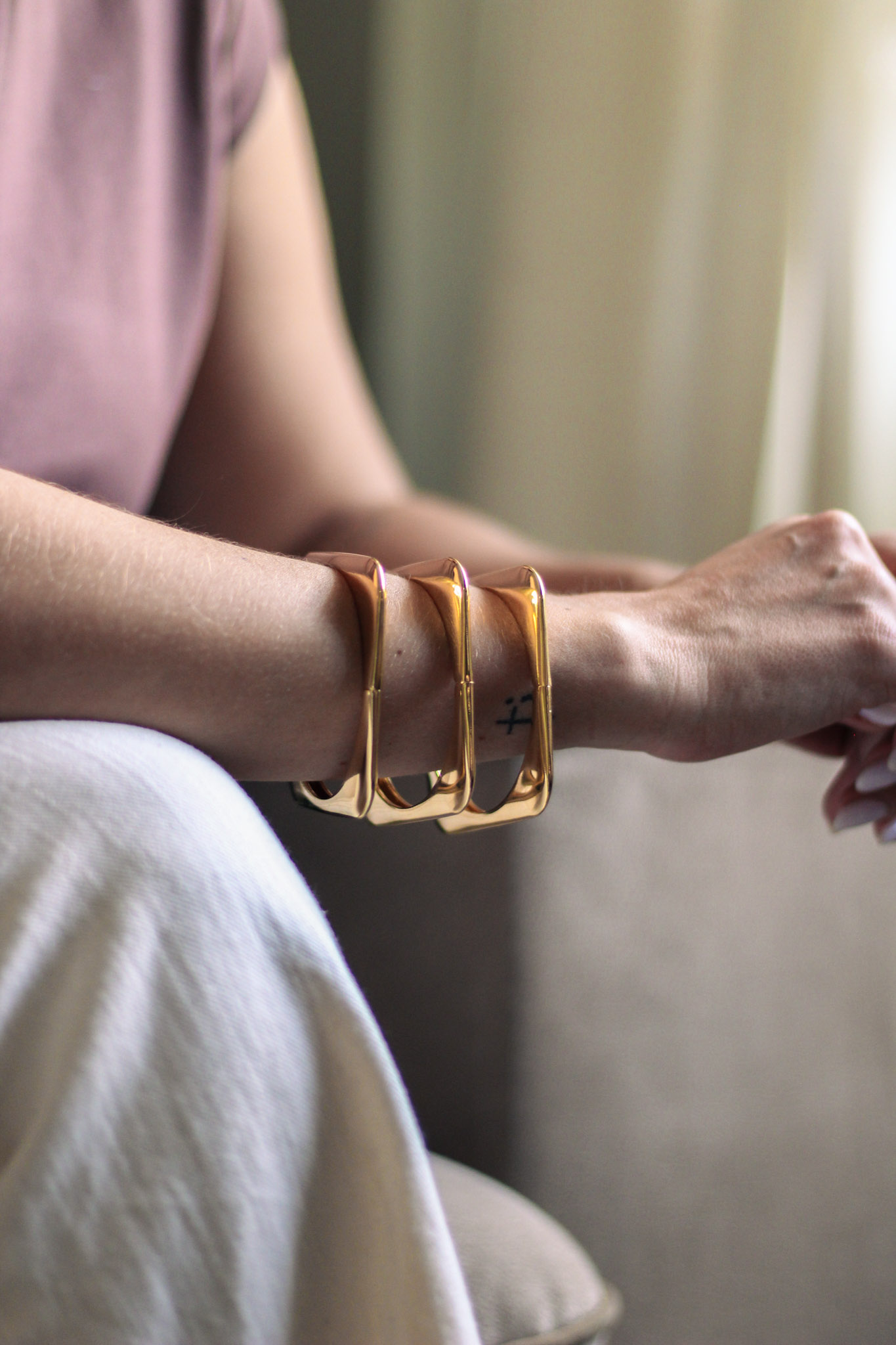 O Bracelete Quadrado combina elegância e modernidade em uma peça de estética arquitetônica. Seu formato geométrico cria um visual marcante e contemporâneo, perfeito para mulheres que apreciam acessórios minimalistas, mas com forte presença.