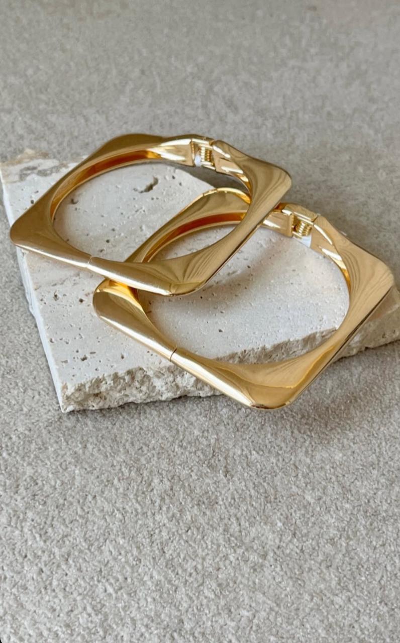 Bracelete Quadrado com design geométrico e acabamento sofisticado. Tamanho médio. Ideal para compor produções elegantes e criativas. Banhado a ouro 18k.