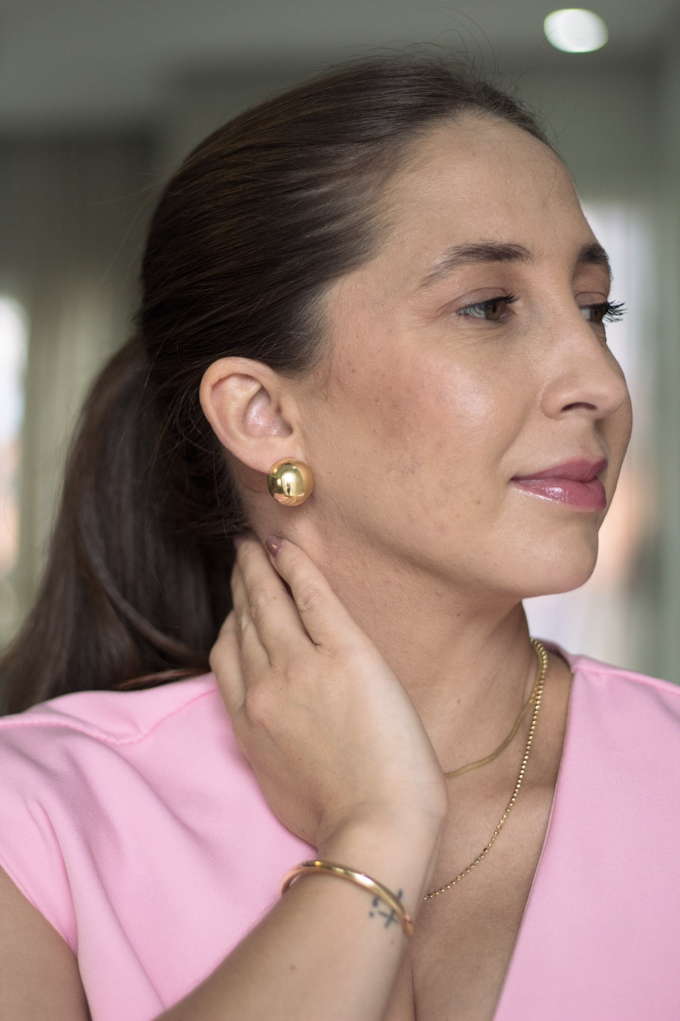 Design minimalista e moderno, com forma redonda perfeita para um toque de elegância discreta no dia a dia.banhado a Ouro 18K.